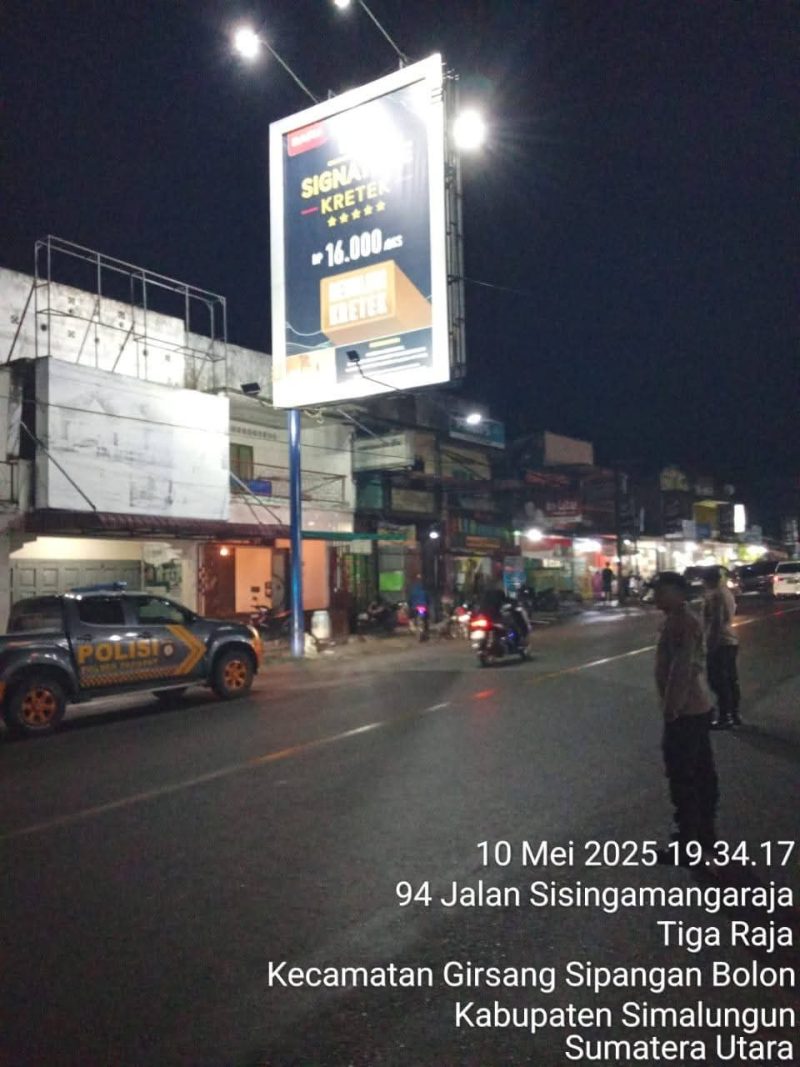 Dalam rangka menjaga keamanan dan ketertiban masyarakat (kamtibmas) serta memberikan rasa aman kepada warga, Polsek Parapat Polres Simalungun melaksanakan kegiatan Blue Light Patrol (BLP) dan antisipasi geng motor pada Sabtu (10/05/2025) pukul 19.30 WIB hingga 21.00 WIB. Patroli ini difokuskan pada lokasi-lokasi yang dianggap rawan gangguan kamtibmas.