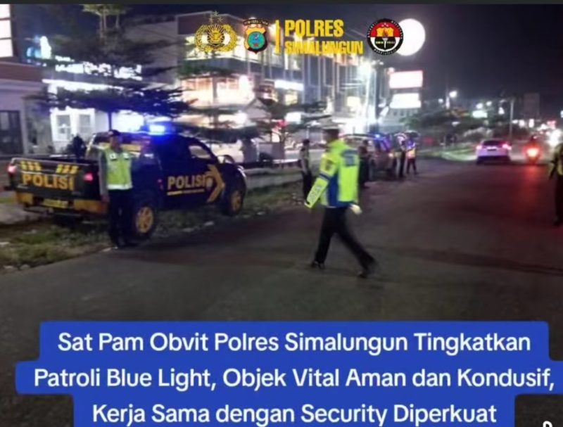 Simalungun – Satuan Pengamanan Objek Vital (Sat Pam Obvit) Polres Simalungun terus meningkatkan kewaspadaan dan pengamanan di wilayah hukumnya. Pada Senin (12/05/2025) pukul 20.00 WIB, Sat Pam Obvit melaksanakan patroli Blue Light menggunakan kendaraan roda empat. Patroli ini difokuskan pada antisipasi tindak pidana 3C (curas, curat, curanmor), gangguan Kamtibmas lainnya, dan kenakalan remaja di objek vital yang berada di wilayah hukum Polres Simalungun. Patroli ini juga bertujuan untuk memperkuat sinergi dan kerjasama dengan pihak keamanan internal objek vital.