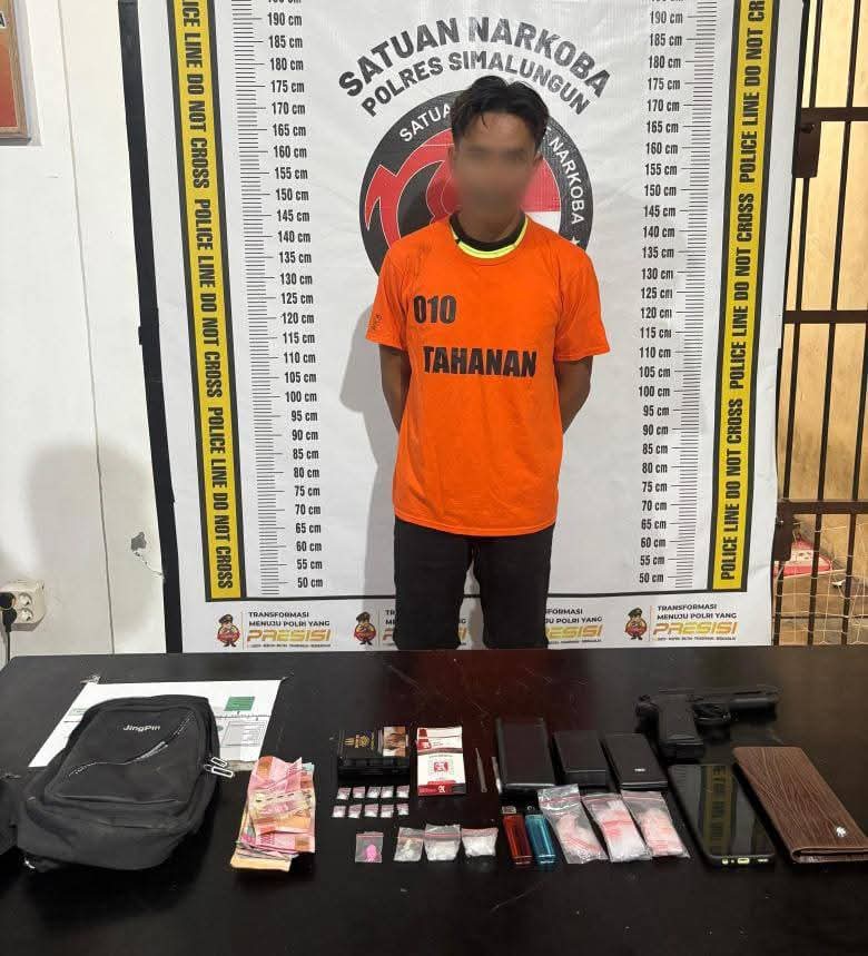 Simalungun – Polres Simalungun berhasil mengungkap kasus peredaran narkoba di wilayah hukumnya dengan menangkap seorang tersangka berinisial EAAP beserta sejumlah barang bukti narkotika jenis sabu-sabu dan pil ekstasi. Penangkapan dilakukan pada Jumat, 16 Mei 2025, di sebuah rumah kosong milik Bapak Abdullah Malik Damanik di Huta VI Negeri Bayu, Nagori Negeri Bayu Muslimin, Kecamatan Tapian Dolok, Kabupaten Simalungun.