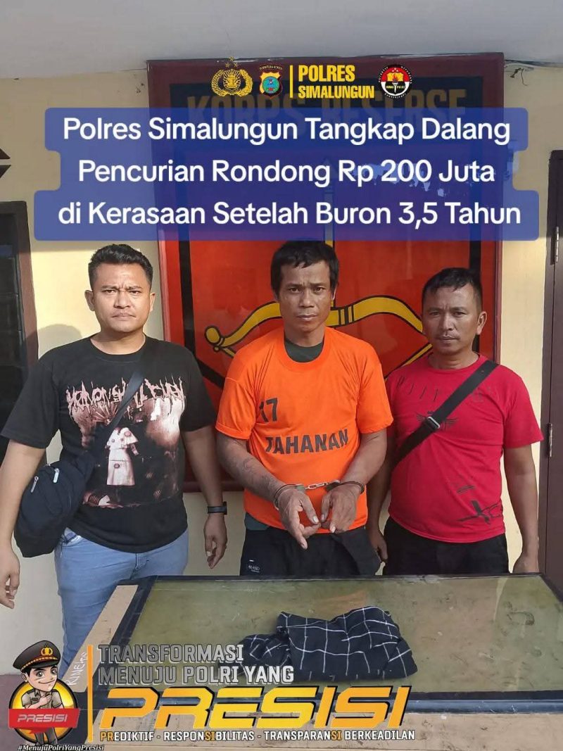 SIMALUNGUN – Polres Simalungun melalui Polsek Perdagangan berhasil menangkap dalang utama kasus pencurian uang tunai sebesar Rp. 200 juta yang terjadi pada akhir tahun 2021. Tersangka “RD” alias Sarundeng (41) berhasil diamankan pada Kamis (22/5/2025) sekitar pukul 13.00 WIB setelah buron selama 3,5 tahun.