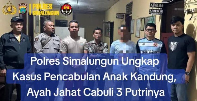SIMALUNGUN – Polres Simalungun berhasil mengungkap kasus pencabulan yang menggegerkan masyarakat setelah seorang ayah berinisial “TRT” (41 tahun) nekat mencabuli tiga putri kandungnya sendiri. Kasus ini terungkap setelah korban ketiga berinisial “Anggrek” (13 tahun) memberanikan diri menceritakan kejadian tersebut kepada kedua kakaknya.