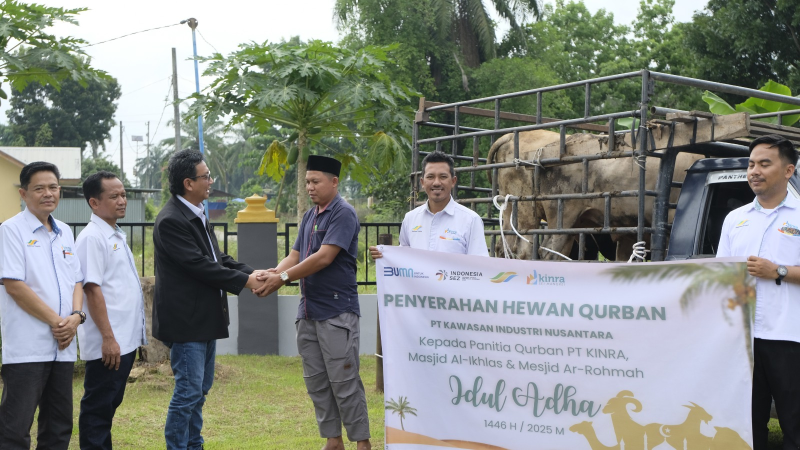 Dalam momen hari Raya Idul Adha 1446 H, Kawasan Industri Nusantara (PT. KINRA) selaku pengelola Kawasan Ekonomi Khusus (KEK) Sei Mangkei turut merayakan dengan melakukan kegiatan penyembelihan hewan qurban, juma’at (06/06/2025). PT. KINRA menyerahkan berupa 3 ekor sapi kepada panitia qurban di masjid sekitar lingkungan KEK Sei Mankei, diantaranya Masjid Al-Ikhlas 1 ekor, Masjid Ar-Rahman 1 ekor dan untuk seluruh karyawan PT KINRA 1 ekor.